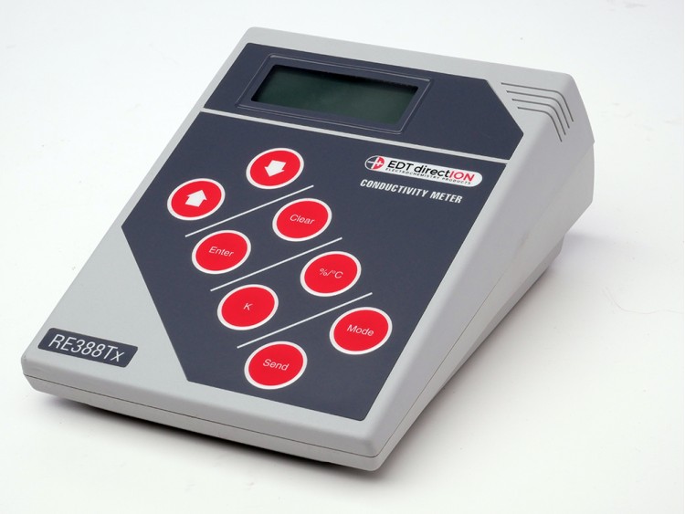 The EDT RE388TX Advanced conductivity meter is an advanced, automatic, bench instrument suitable for most conductivity applications. It has a robust ,splash-proof case with a clear display and easy to use, positive feedback, touch controls.